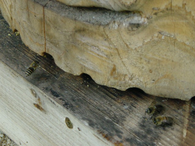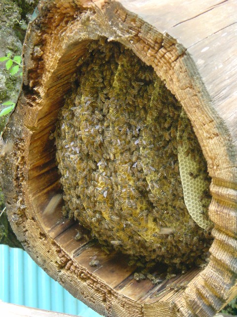 何人かでゴーラの中を覗き込んでいる写真は、 山手の上のところです。5月3日、小川の 前さん宅へ行く途中でたまたま巣別れに 出会ったので撮影させてもらいました。 幸先いいな〜と思っていたのですが、 その時だけでした。山手で撮影したのも、 途中から参加だったので、 始めからきちんとは撮れていません・・・