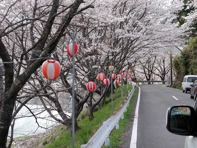 七川ダム湖周辺の桜並木は、桜のトンネルのようでした。